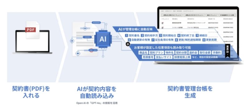 とくに、AIが契約書の内容を自動で読み取って台帳を生成してくれる自動読み込み機能が便利だと感じました。これまで10分かけて転記していた作業を、システムが代行してくれる。これこそが、専任の担当者がおらず、広範なバックオフィス業務を行っている状況に必要な効率化だと感じました。