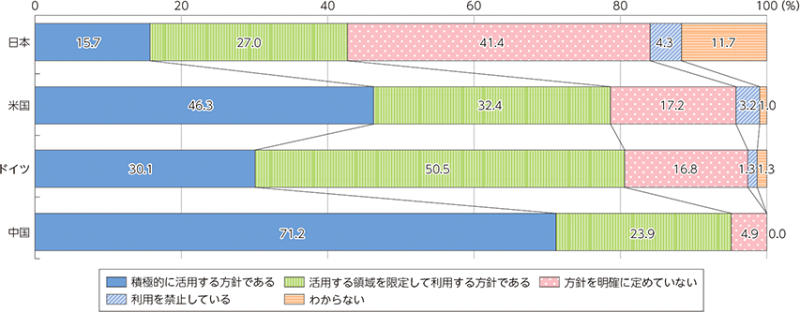 総務省の「情報通信白書(令和6年版)」によると、2024年時点で国内企業で生成AIを「積極的に活用している」または「一部活用している」と回答した割合は約42.7%にとどまっています。米国や中国では8割を超えており、日本企業は国際的な生産性競争において後れを取るリスクに直面しています。