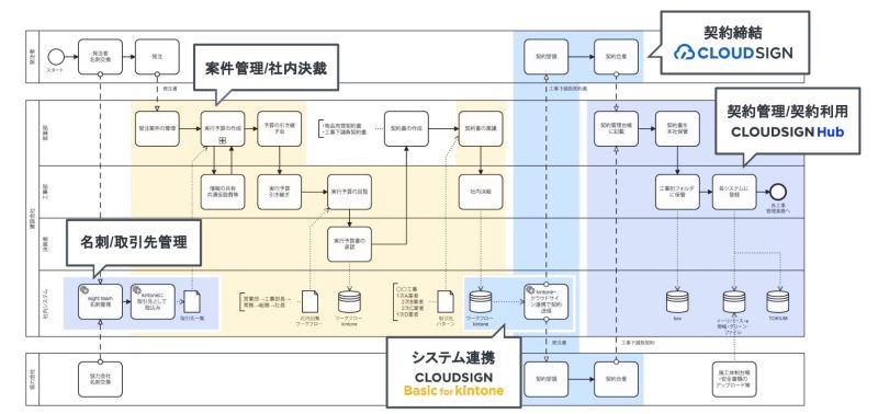 たとえば、当社のクラウドサインを導入していただく場合、どの範囲までをクラウドサインに任せるのか、契約締結前後をどのようにシームレスにやっていくかなど、業務フローを使うことで検討範囲を決めやすくなりました。