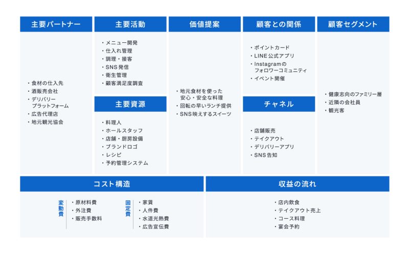 【飲食店を想定したビジネスモデルキャンバスの記入例】
