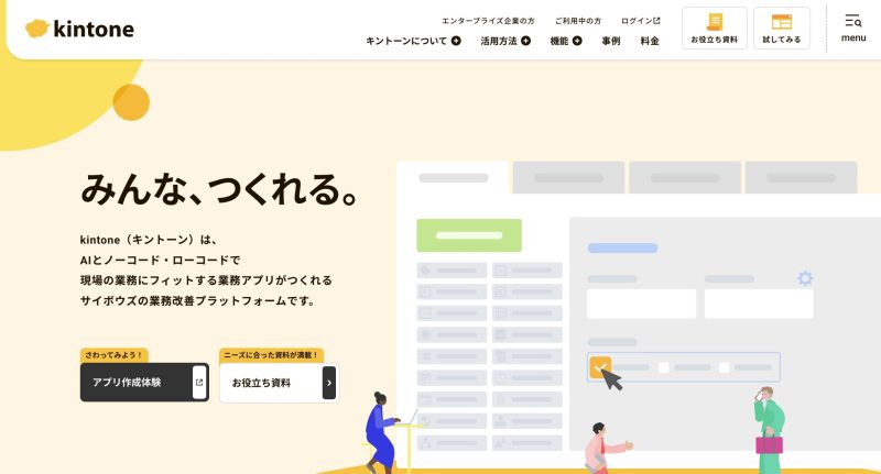 | kintone | ノーコードでカスタマイズ自在。 業務アプリを自由に構築可能 |