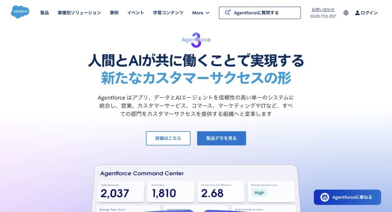 | Salesforce | 世界No.1の導入実績。 高度な分析と豊富なAPI連携が可能 |