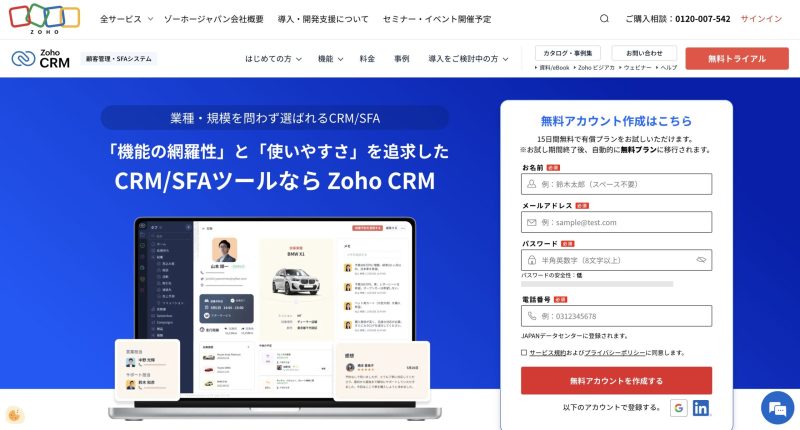 | Zoho CRM | 多機能ながら低コスト。 中小企業にも人気 |