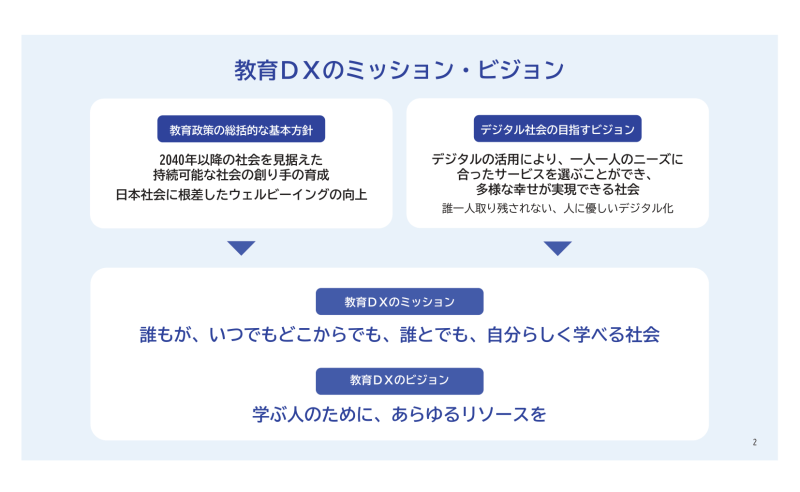 - 学びの変革: 受動的な授業から能動的・個別的な学習へ。