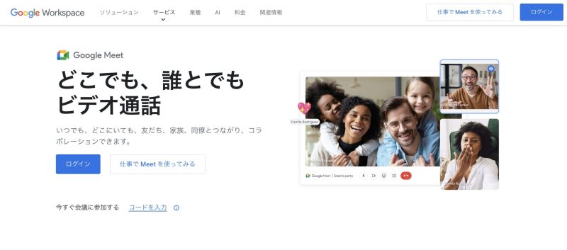 Googleアカウントの作成・ログインができたら、ブラウザ(Google Chromeなど)で、Google Meetのホームページにアクセスします。