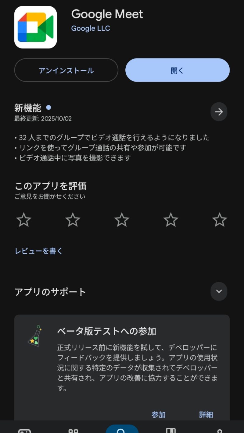 スマートフォンの場合、最初にGoogle Meetの「アプリ」をインストールしましょう。Androidなら「Google Playストア」、iPhoneなら「App Store」で「GoogleMeet」などと検索し、アプリをダウンロードします。