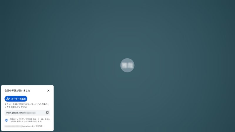 「すぐに開始」をした場合、左下の「ユーザーの追加」から参加者を招待することも可能です。