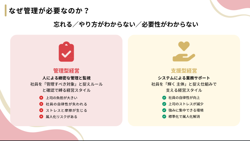 そこで、マネジメントスタイルを「管理型」から「支援型」に変えたんです。