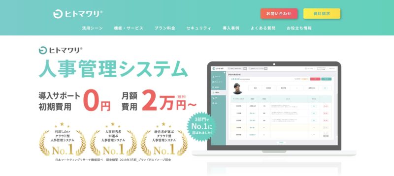 | ヒトマワリ | 月額2万円〜(税別) | 目的別にプラン料金を選択可能。 マイページやダッシュボード機能などUIが充実。 |