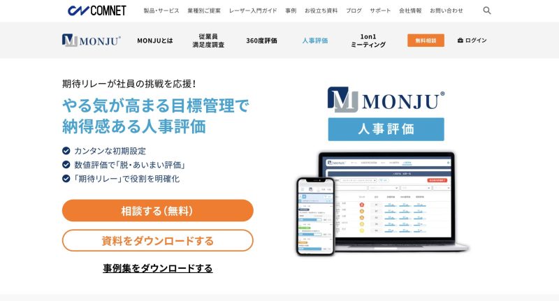 | MONJU | 年払い24万円〜(20名以下、税別) | 数値評価で「脱・あいまい評価」。 「期待リレー」で役割を明確化 |