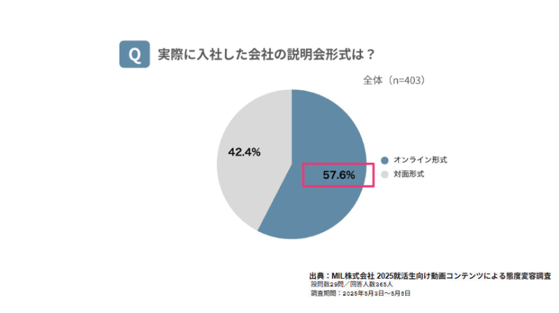 このほかにも、Z世代の7割以上が会社説明会のオンライン化を支持しており、オンラインでも入社に繋がることが明らかになったというMIL株式会社の調査レポートもあります。