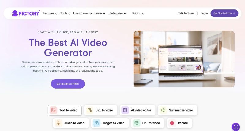 Pictoryは、ブログ記事やスクリプトをもとに、自動で短尺動画を生成できるツールです。英語中心のツールですが、入力するスクリプトや読み込む記事の言語に関しては、日本語対応もされ始めています。テキスト、URL、パワーポイントなどから動画を作成できます。