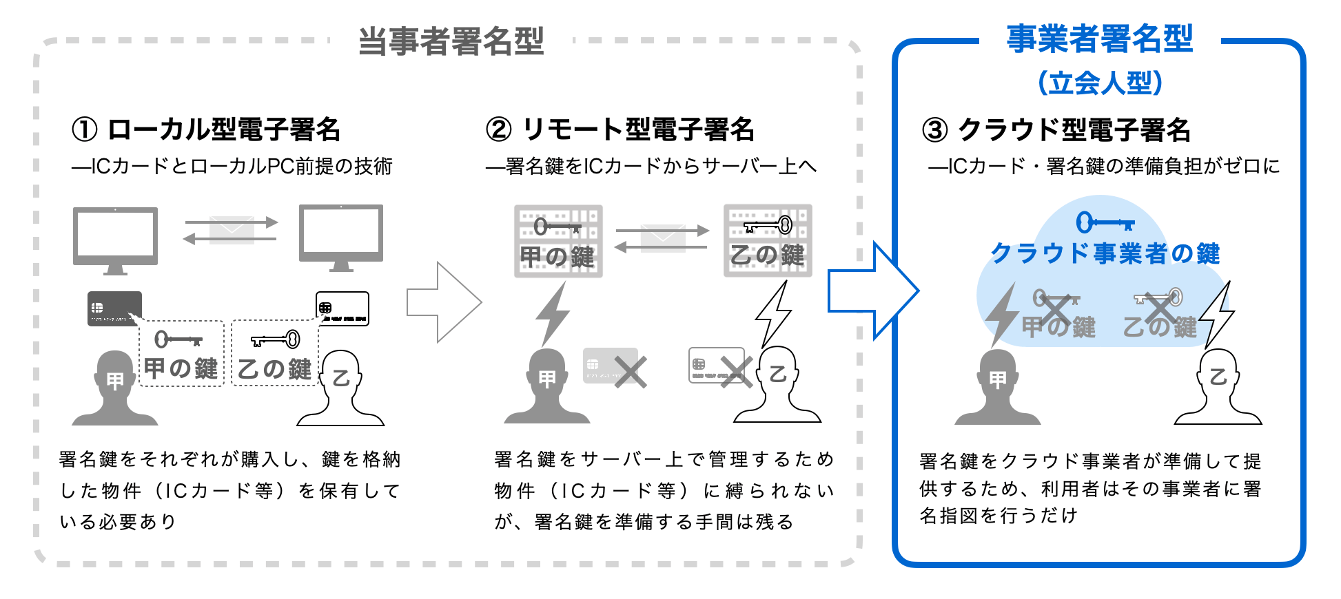- 当事者それぞれが自己の負担で署名鍵を準備する「当事者署名型」
