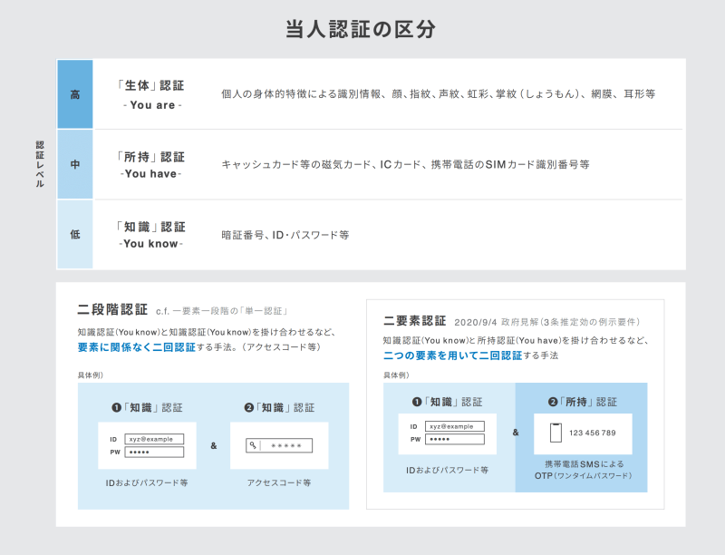 です。これらは、事前に認証されたユーザーが、実際にそのサービスを利用していることを確認(当人認証)するために用いられます。