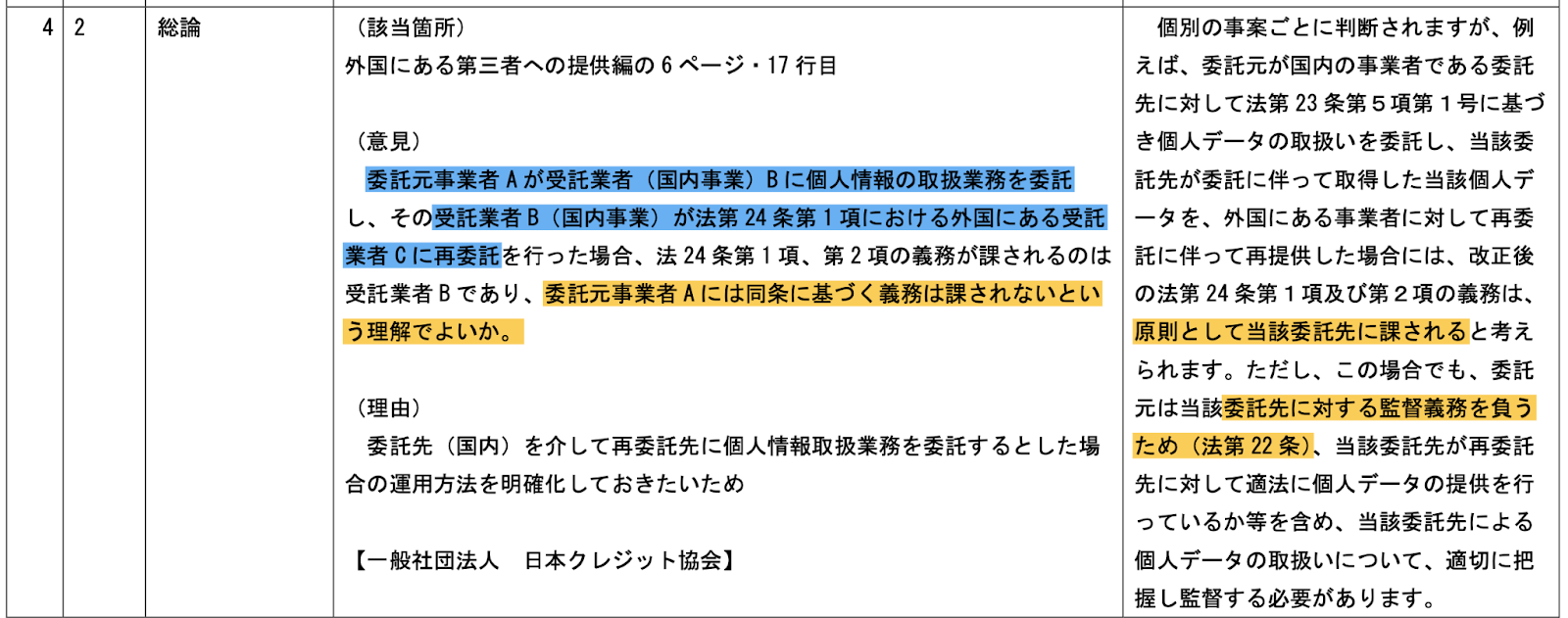 - 「個人情報の保護に関する法律についてのガイドライン(外国にある第三者への提供編)の一部を改正する告示案」に関する意見募集結果
