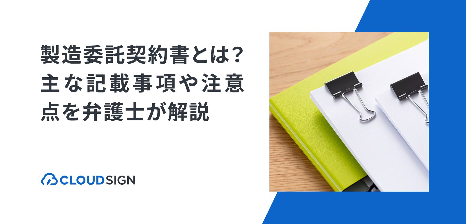 「製造委託契約」とは、一方当事者が相手方に対して製品の製造を委託し、相手方がこれを受託する内容の契約です。「製造委託契約書」は、製造委託契約の内容を記載した文書に当たります。
