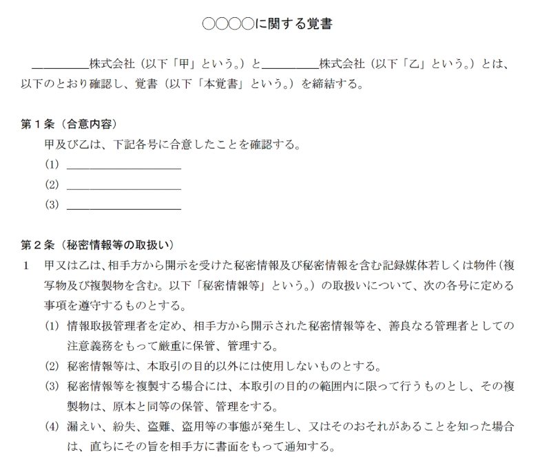 覚書の具体的なイメージを掴むための参考として、公的機関が提供しているひな形もあります。