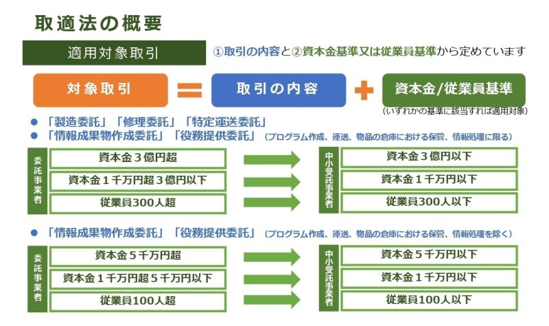 商取引のなかには、取適法(旧:下請法)が適用されるケースがあります。