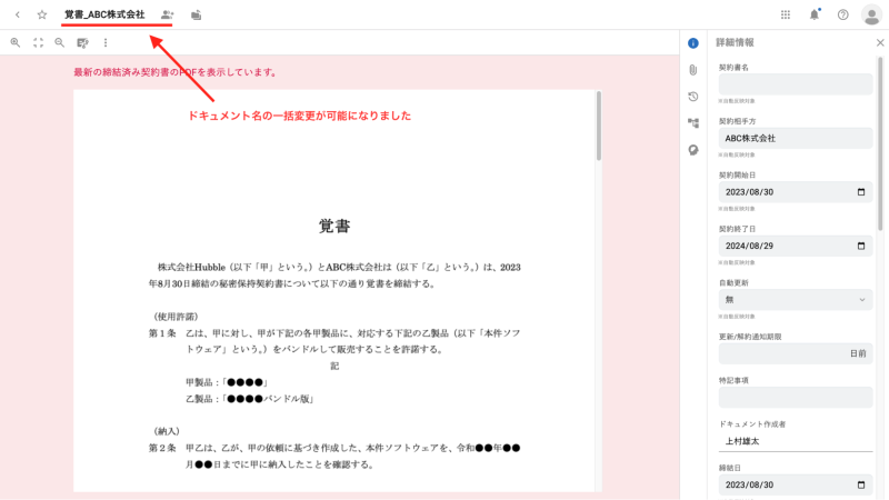 書類情報の一括編集履歴の項目にファイル名を追加(エンタープライズプラン)