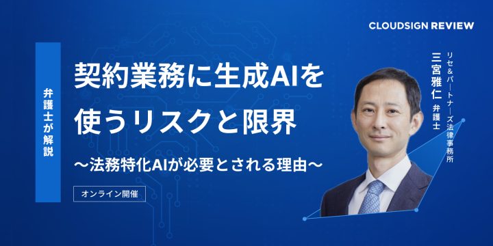 本セミナーでは、契約業務に生成AIを使うリスクや法務特化AIを使う必要性について弁護士の三宮 雅仁先生の立場からご説明をいたします。
