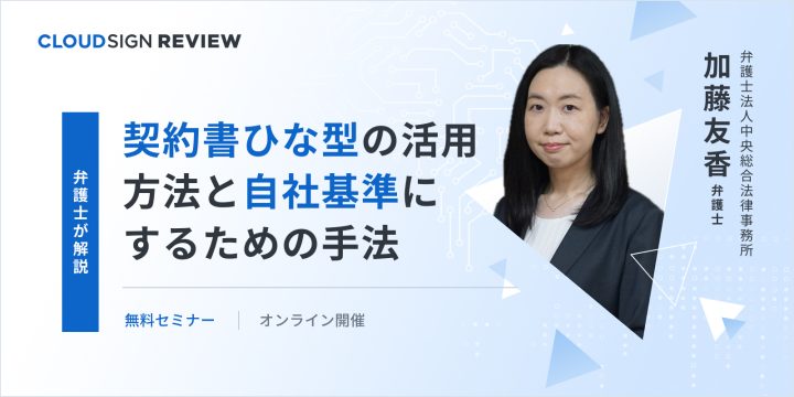 本セミナーでは弁護士法人中央総合法律事務所の加藤弁護士にご登壇いただき、契約書ひな型の活用方法と自社に合った契約書を作成するための具体的な手法をお話しいただきます。