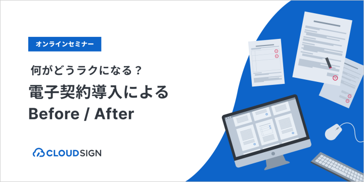 本セミナーでは、電子契約導入によるメリットや効果を、導入前後のビフォーアフター形式で事例を交えてご紹介します。