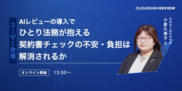 本セミナーでは、法務専門の部署がない中で契約書AIレビューサービス「クラウドサイン レビュー」を実際にご活用いただいているユーザー様をお招きし、導入前に抱えていた課題、導入後の活用のポイントや業務の変化などリアルな声をお届けいたします。