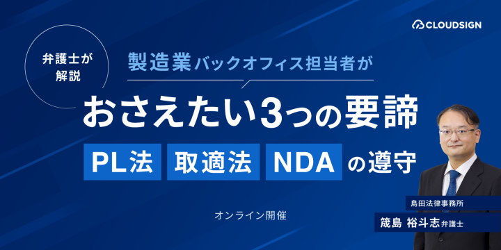 製造業のバックオフィス業務に携わるみなさまへ、製品開発から機密保持にいたるまで、企業活動を支える重要法務領域の「今、おさえるべき要諦」を解説するセミナーを開催します。