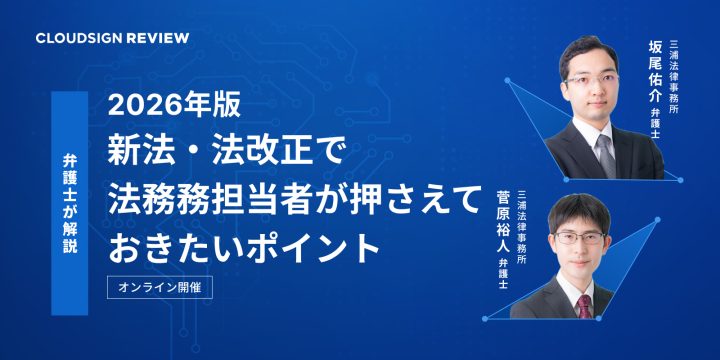 本セミナーでは、2026年に改正される法律と、企業法務の担当者がおさえておくべきポイントについて、三浦法律事務所の坂尾佑平先生と菅原裕人先生に解説いただきます。